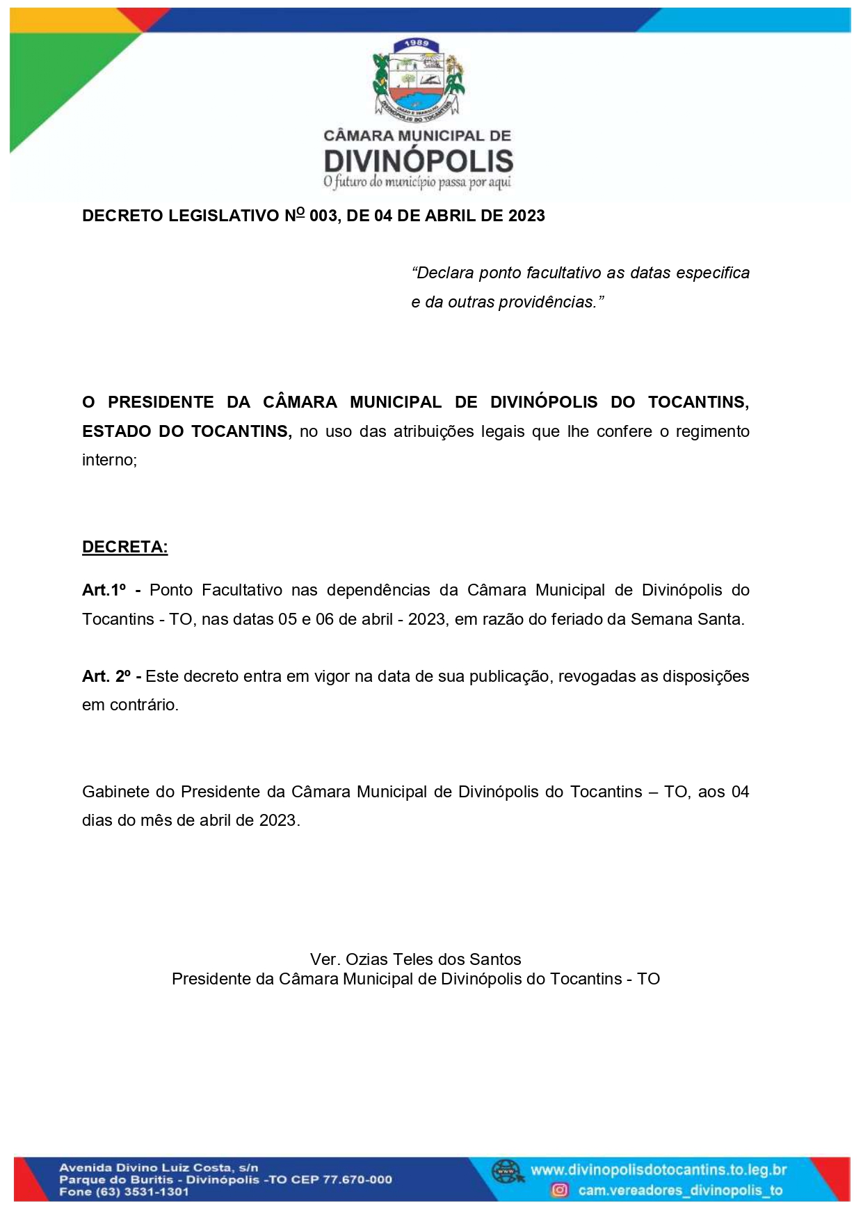 Poder Legislativo de Divinópolis - Estado do Tocantins