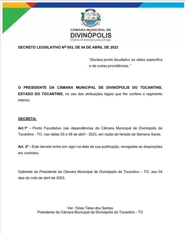 Poder Legislativo de Divinópolis - Estado do Tocantins